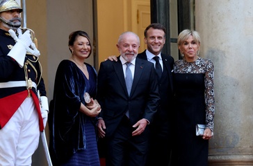 Prezydent Emmanuel Macron i jego żona Brigitte Macron witają prezydenta Brazylii i jego żonę na oficjalnej kolacji w Pałacu Elizejskim w Paryżu 64