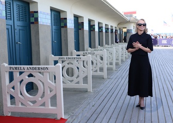 Pamela Anderson inaugure sa cabine sur les planches de Deauville lors du 51éme Festival du Cinema Américain de Deauville