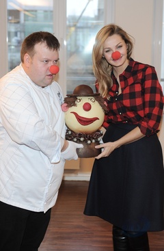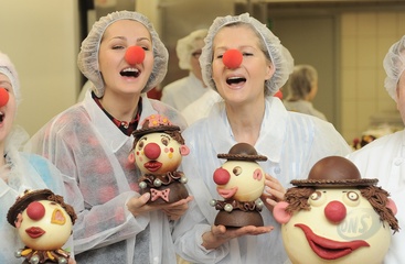 Malgorzata Socha w fabryce czekolady w Wedlowskiej Pracowni Rarytasow z fundacja Dr Clowna, Warszawa 2011