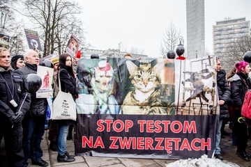 Manifestacja przeciw ustawie o ochronie zwierząt doświadczalnych