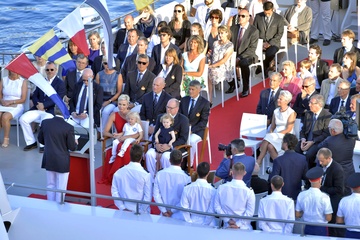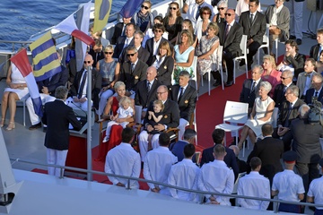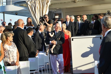 Charlene i ksiaze Albert z dziecmi na statku