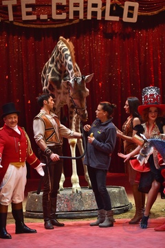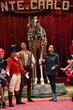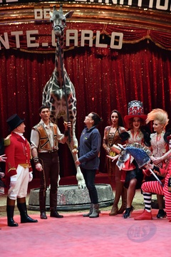 Ksiezniczka Stefania karmi zyrafe na 42. Monte-Carlo International Circus Festival