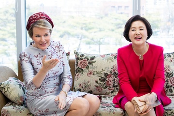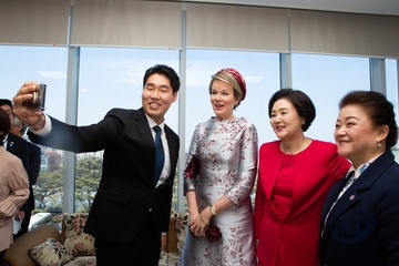 Belgijska para krolewska podczas wizyty w Korei