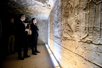 Macronowie w garniturach zwiedzaja Egipt