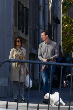 Ksiaze Joachim z zona, corka i z psem spaceruja w Paryzu