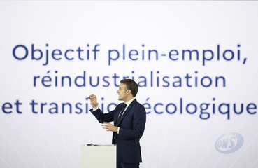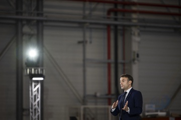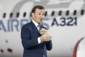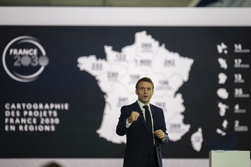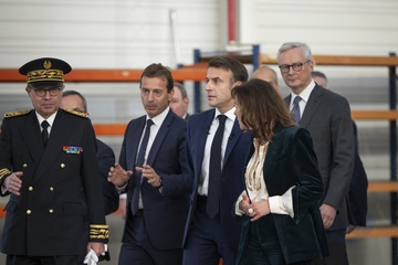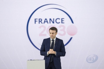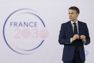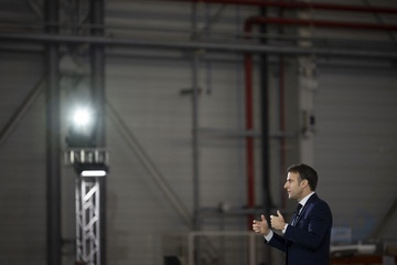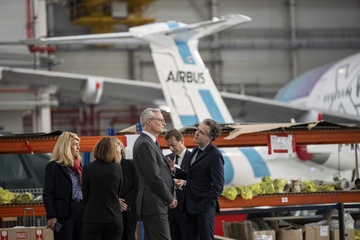 Le président Emmanuel Macron visite le site de Airbus à Toulouse à l'occasion des deux ans du plan d'investissement France 2030