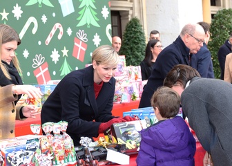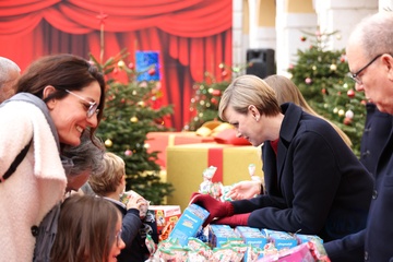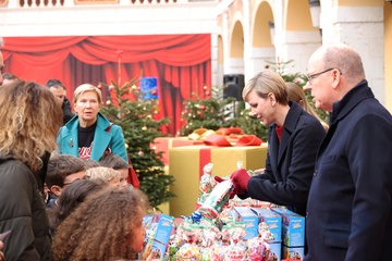 Książę Monako Albert II i księżna Charlene z Monako podczas dostarczania prezentów bożonarodzeniowych w Pałacu Monako