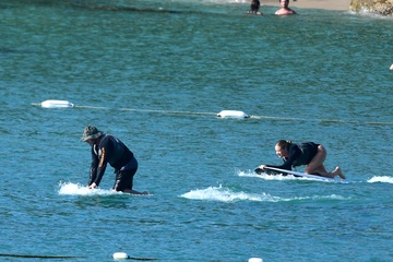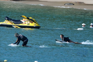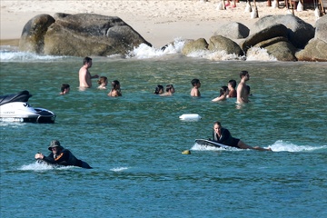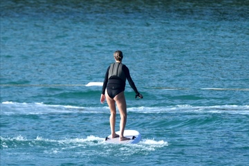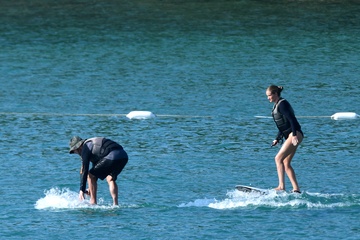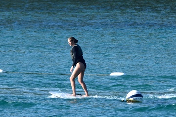 Exclusif - Prix spécial - No Web - Exclusif - Prix spécial - No Web - Jason Statham et sa compagne Rosie Huntington-Whiteley s'essaient à la planche volante ou foil électrique lors de leurs vacances à Phuket, Thaïlande 123