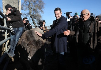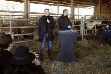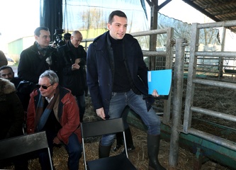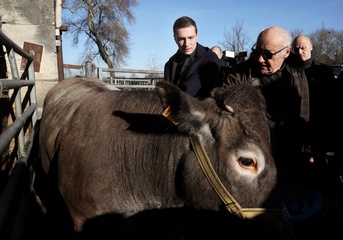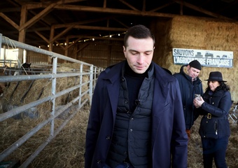 Jordan Bardella, przewodniczący Zlotu Narodowego, odwiedza rolników w Queyrac