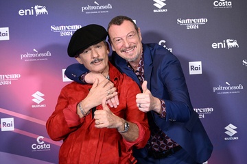 Amadeus and Rosario Fiorello during a photocall on the occasion of the 74th Sanremo Italian Song Festival, in Sanremo, Italy, 10 February 2024.