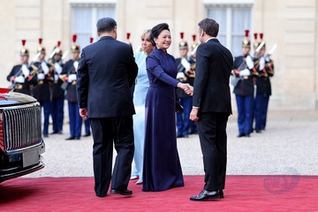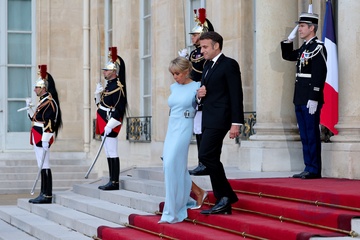 Arrivée des invités au dîner d'Etat en l'honneur du président chinois Xi Jinping et de sa femme la Première Dame Peng Liyuan au palais présidentiel de l'Elysée à Paris (Brigitte Macron Emmanuel Macron)