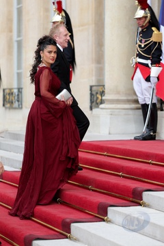 Arrivée des invités au dîner d'Etat en l'honneur du président chinois Xi Jinping et de sa femme la Première Dame Peng Liyuan au palais présidentiel de l'Elysée à Paris (Salma Hayek)