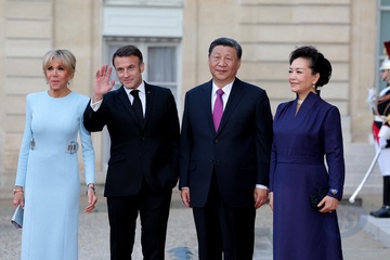 Arrivée des invités au dîner d'Etat en l'honneur du président chinois Xi Jinping et de sa femme la Première Dame Peng Liyuan au palais présidentiel de l'Elysée à Paris (Brigitte Macron Emmanuel Macron Xi Jinping Peng Liyuan)
