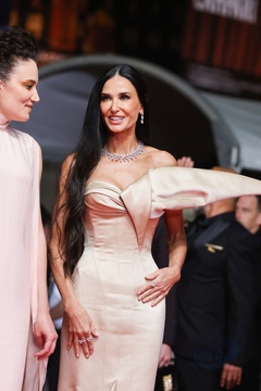 J - Montée des marches du film « The Substance » lors du 77ème Festival International du Film de Cannes (Coralie Fargeat, Margaret Qualley, Demi Moore)