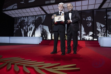 B - Cérémonie de clôture du 77ème Festival International du Film de Cannes au Palais des Festivals à Cannes (Jacques Audiard, Karla Sofia S.Gomez, Z.Saldana, A.Paz), George Lucas, Sean Baker)