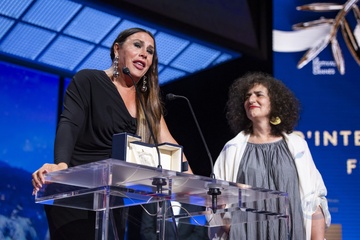 B - Cérémonie de clôture du 77ème Festival International du Film de Cannes au Palais des Festivals à Cannes (Jacques Audiard (Prix du jury pour «Emilia Perez»), Karla Sofia)