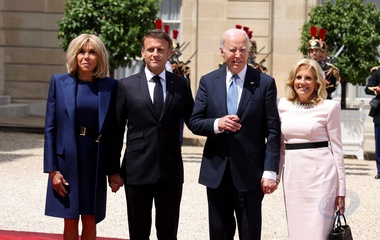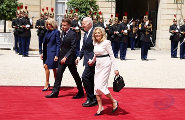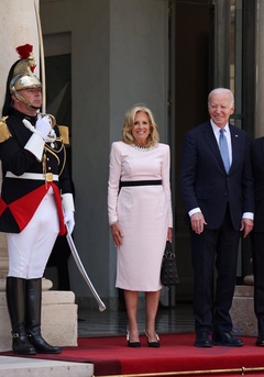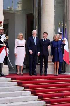 Joe Biden i jego żona Jill po przybyciu do Pałacu Elizejskiego w Paryżu z okazji wizyty państwowej we Francji