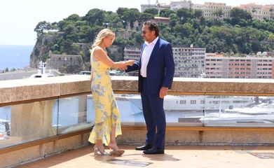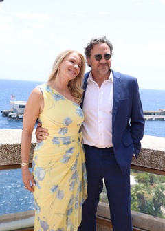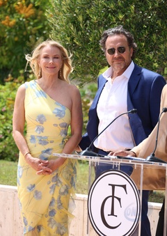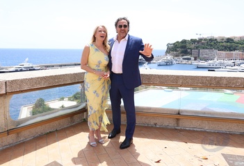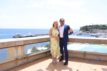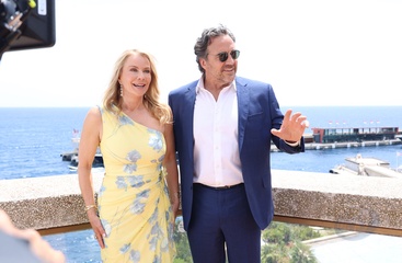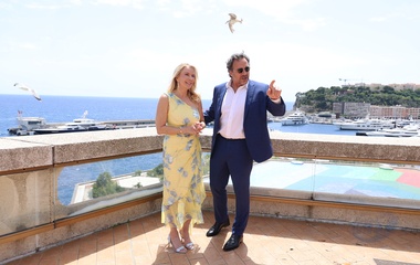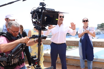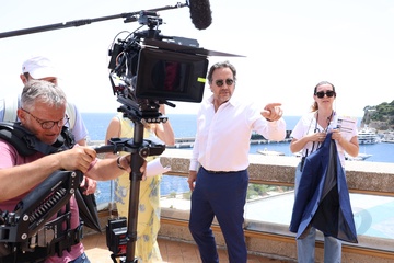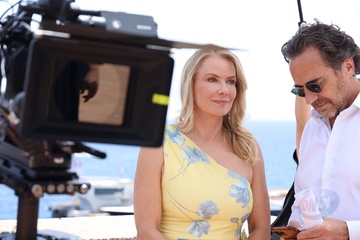 Katherine Kelly Lang i Thorsten Kaye kręcą odcinek amerykańskiego serialu „Miłość, chwała i piękno” (Odważni i piękni) w Monako, w ogrodach hotelu Fairmont 101