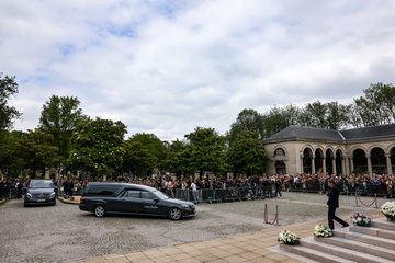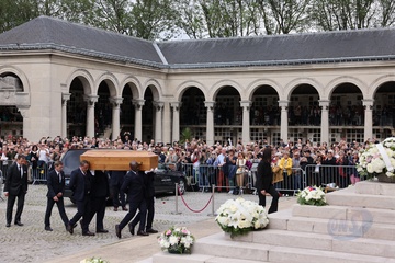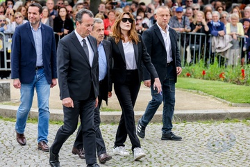 Arrivées aux obsèques de Françoise Hardy au cimetière du Père-Lachaise à Paris