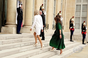 Prezydent Republiki Francuskiej Emmanuel Macron i pierwsza dama Brigitte Macron przyjmują króla Jordanii Abdullaha II i królową Ranię na roboczym obiedzie w Pałacu Elizejskim w Paryżu 53
