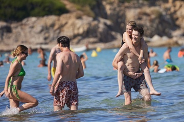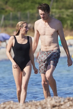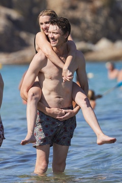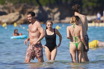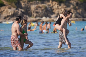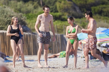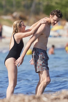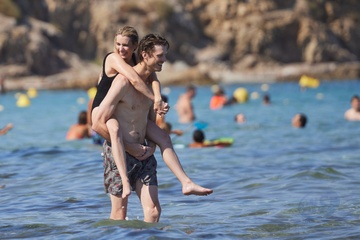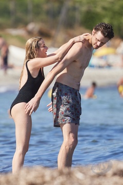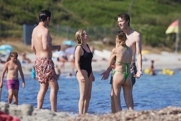 Ashley Benson, jej mąż Brandon Davis, Emma Roberts i jej narzeczony Cody John bawią się jak duże dzieci na plaży podczas wakacji w Zatoce Saint-Tropez 92