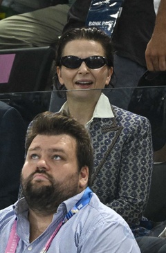 Célébrités assistent aux épreuves de gymnastiques lors des Jeux Olympiques de Paris 2024 (JO) au Palais omnisports Bercy Arena, à Paris