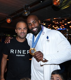 Exclusif - Prix Spécial - No Web - Teddy Riner fête son titre de champion Olympique de judo +100KG au restaurant "Podium" du groupe (Les bistrots Pas Parisiens) à Paris