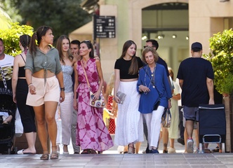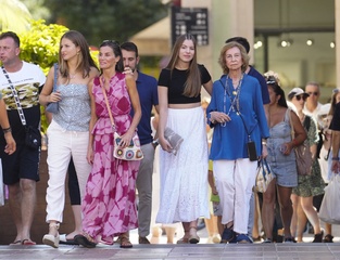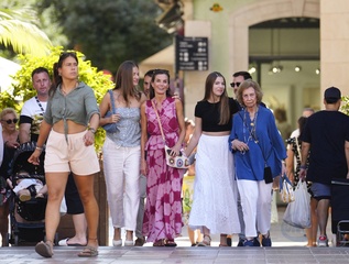 La reine Letizia d'Espagne, ses filles la princesse Leonor et l'infante Sofia, la reine Sofia, se baladent à Palma de Majorque