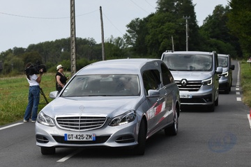 Przyjazd Monseigneur Di Falco (Jean-Michel di Falco), który będzie prowadził ceremonię pogrzebową aktora, do posiadłości Alaina Delona w Douchy-Montcorbon