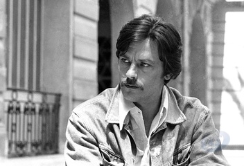 Alain Delon na planie filmu „Comme un Boomerang” w reżyserii José Giovanniego w Nicei w Studios de la Victorine z plenerami w dzielnicy Moulins, marzec 1976”