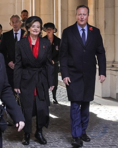 Tony Blair, David Cameron, former Prime Ministers, on Remembrance Sunday in Downing Street, London, UK