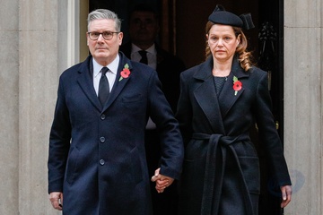 Prime Minister Sir Keir Starmer and wife Lady Starmer on Remembrance Sunday in Downing Street, London, UK