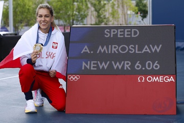 MIROSLAW Aleksandra z Polski DENG Lijuan z Chińskiej Republiki Ludowej Sport KALUCKA Aleksandra z Polski na podium Wspinaczka na czas kobiet, finał podczas Igrzysk Olimpijskich Paryż 2024 w dniu 7 sierpnia 2024 r.