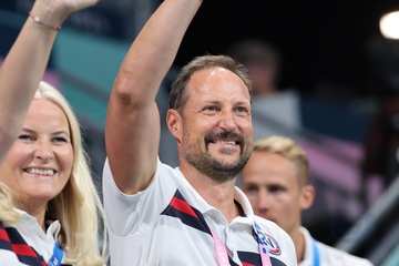 Książę Haakon i księżna Mette-Marit z Norwegii podczas finału piłki ręcznej kobiet pomiędzy Francją a Norwegią (21-29) podczas Igrzysk Olimpijskich Paryż 2024