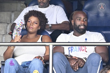 Gwiazdy na trybunach podczas półfinałowego meczu koszykówki pomiędzy Francją a Niemcami podczas Igrzysk Olimpijskich w Paryżu w 2024 r. (OG) w Arenie Bercy