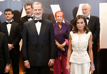 Król Hiszpanii Felipe VI i królowa Letycja podczas kolacji z okazji wręczenia nagród „Luca de Tena”, „Mariano de Cavia” i „Mingote” w siedzibie gazety ABC w Madrycie