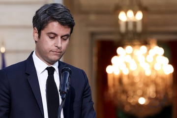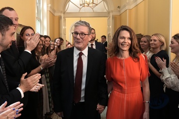 Emmanuel Macron, Prezydent Republiki Francuskiej i Pierwsza Dama Brigitte Macron, opuszczają lokal wyborczy podczas drugiej tury wyborów legislacyjnych w Le Touquet