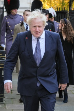 Boris Johnson on Remembrance Sunday in Downing Street, London, UK