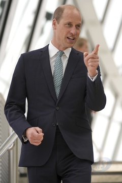 Brytyjski książę William gestykuluje po przybyciu na obóz innowacji Earthshot Prize w Londynie, czwartek, 27 czerwca 2024 r. William weźmie udział w sesji panelowej podczas inauguracyjnego obozu innowacji Earthshot Prize, aby uczcić wpływ finału nagrody Ea