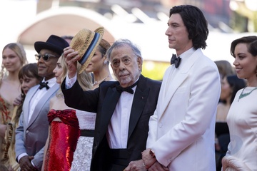 Francis Ford Coppola i Anne-Sophie Lapix w Carlton Cannes, hotelu Regent podczas nagrywania wiadomości z France 2 o 20:00 na marginesie 77. Międzynarodowego Festiwalu Filmowego w Cannes
