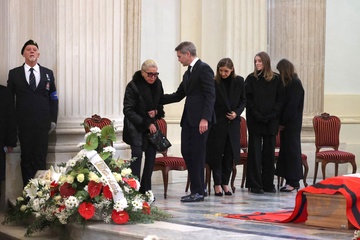 Książę Emmanuel-Philibert Sabaudii uczestniczy wraz z rodziną w stypie pogrzebowej swojego ojca, księcia Wiktora-Emmanuela Sabaudii, w kościele Sant'Uberto w Turynie.