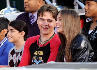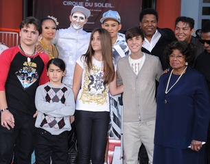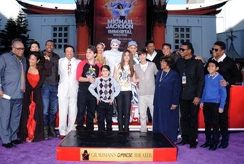 Dzieci Michaela Jacksona i jego przyjaciele podczas imprezy upamietniajacej muzyka w Grauman's Chinese Theatre, Hollywood