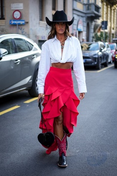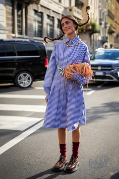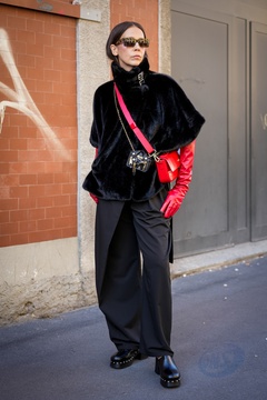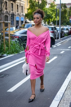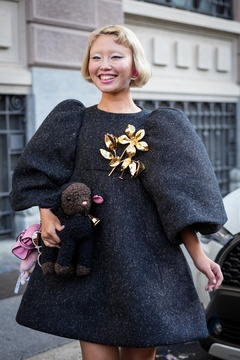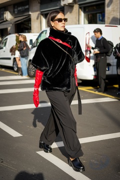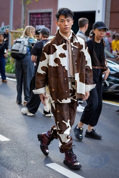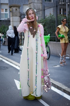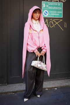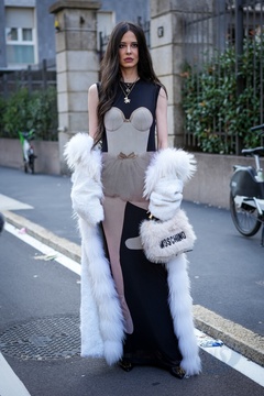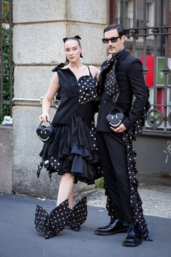 Street Style at Milan Fashion Week 2025 - Moschino in Milan, Italy on 25 September 2025.