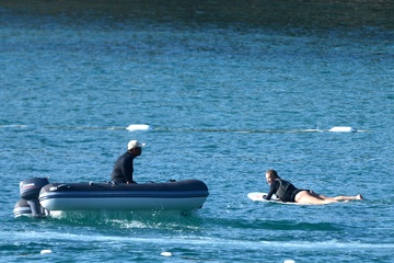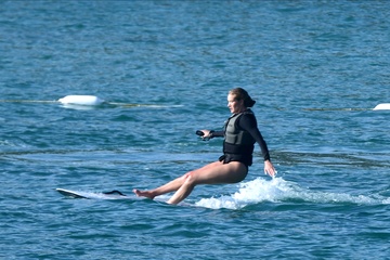 Exclusif - Prix spécial - No Web - Exclusif - Prix spécial - No Web - Jason Statham et sa compagne Rosie Huntington-Whiteley s'essaient à la planche volante ou foil électrique lors de leurs vacances à Phuket, Thaïlande