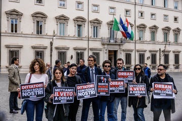Sit-in by +Europa against the visit of the Prime Minister of Hungary