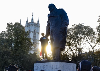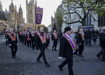 Oranzysci maszerują na Parlament w Londynie w ramach kontrdemonstracji z okazji Dnia Rozejmu