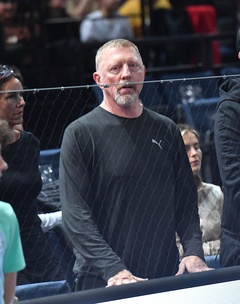 Holger Rune et son entraîneur Boris Becker avant le quart de finale l'opposant à Novak Djokovic lors de l'Open Rolex Paris Masters