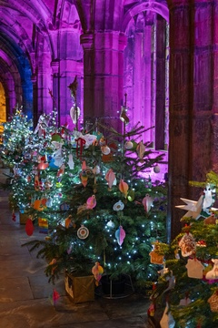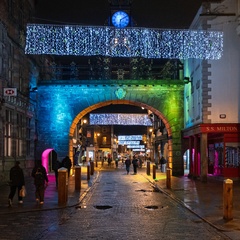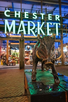 Entrance to Chester market at Christmas time. Chester, Cheshire, North west England.