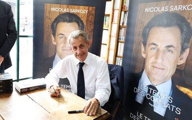 Nicolas Sarkozy podpisuje ksiazke Le Temps des Combats