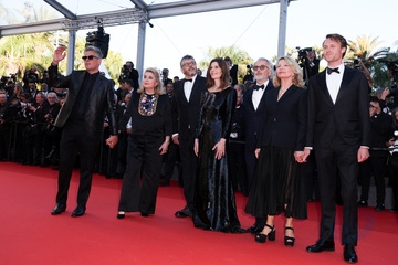 J - Montée des marches du film « Marcello Mio » lors du 77ème Festival International du Film de Cannes